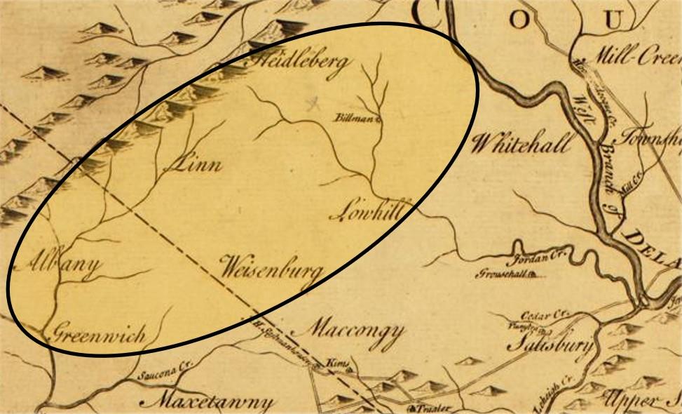 In 1973, Arthur K. Klingaman, local genealogist and historian, in an article on “The History of Albany Township” noted: “Allemangel” was the name for that region in Berks and Lehigh Counties in Pennsylvania which now encompasses the townships of Lynn, Heidelberg, Weissenberg, Lowhill in Lehigh County, and of Albany and the northern part of Greenwich in Berks County.”