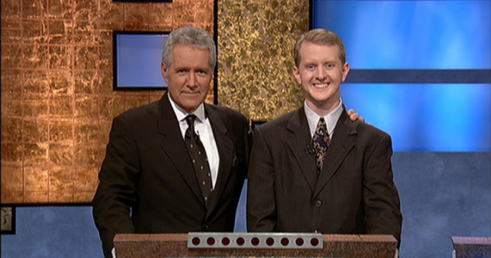 Alex Trebek and Ken Jennings in July 2004. Photo: Getty Images