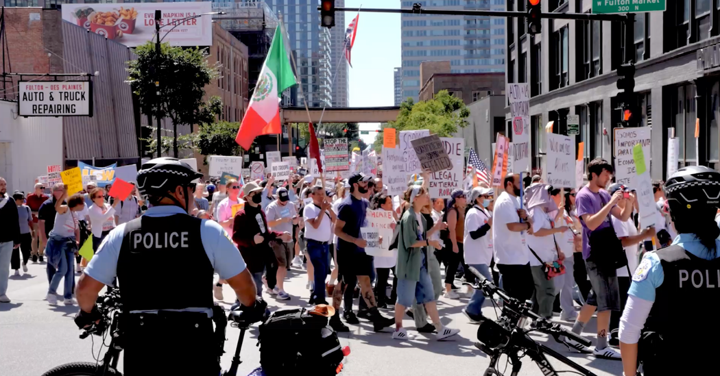 Progressive activists, Democratic leaders and ordinary voters gathered in crowds large and small around the country on Monday to protest the Trump administration and voice support for workers on the Labor Day holiday.