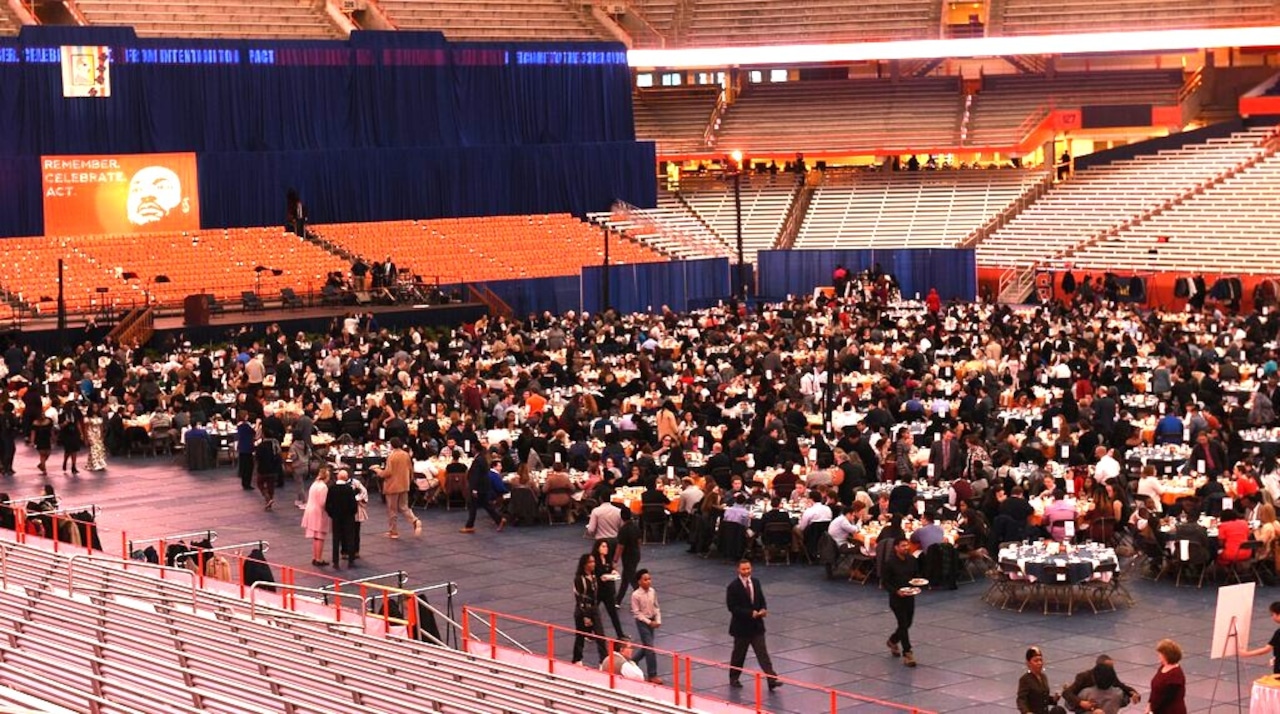 The event, held in the JMA Wireless Dome, has drawn about 2,000 people in past years. It’s described as the largest MLK event of its kind on any college campus.